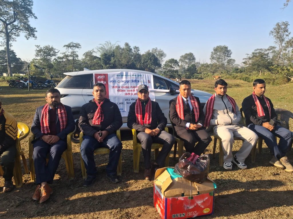भद्रपुर जेसीजका अध्यक्ष शैलेस श्रेष्ठको अध्यक्षता एवम् कार्यक्रम संयोजक कुशल न्यौपानेको संयोजकत्वमा आयोजित समारोहमा प्रमुख अतिथि भद्रपुर जेसीजका पूर्व अध्यक्ष डिल्लीराम पोखरेलले जेसीज सप्ताह उद्घाटन गरेका थिए ।